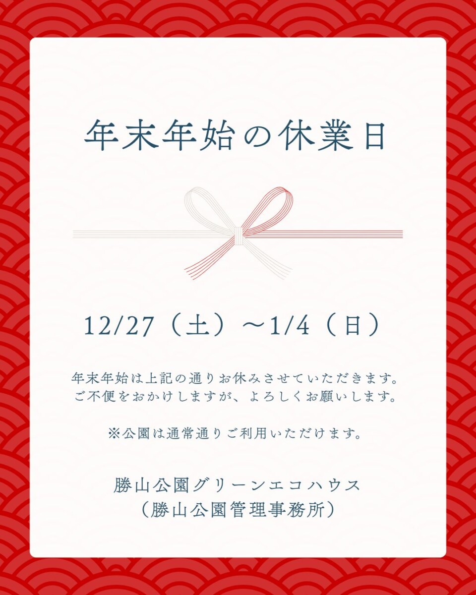 勝山公園管理事務所 年末年始の営業時間のお知らせ